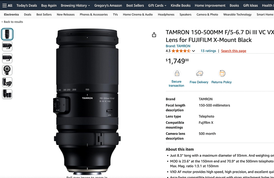 ![]() | Fujifilm XF 100-400mm f/4.5-5.6 R LM OIS WRBEST TELEPHOTO LENS |